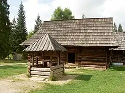 - Die Straße in der oberen Orava: Die Hauptstraße eines Dorfes mit aneinandergereihten Häusern aus der Zeit der Kolonisierung der Walachei.
