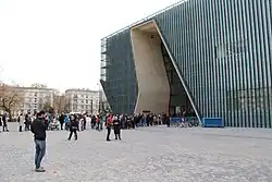 Das Museum der Geschichte der polnischen Juden POLIN (poln. Muzeum Historii Żydów Polskich, POLIN) ist ein Museum in der polnischen Hauptstadt Warschau, neben dem Denkmal der Helden des Warschauer Ghettos. Der Grundstein wurde am 26. Juni 2007 gelegt. Das Museum wurde am 19. April 2013 mit einer Feier anlässlich des 70. Jahrestages des Beginns des Warschauer Ghettoaufstandes teileröffnet.[1] Die komplette Fertigstellung und feierliche Eröffnung fand am 28. Oktober 2014 statt.[2][3] Gründungsdirektor des Museums war Jerzy Halbersztadt, 2011 abgelöst durch Agnieszka Rudzińska-Rytel (vorläufig).