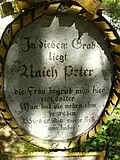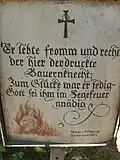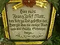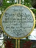 - Hier liegt der ehrsame Jüngling Raserer, welcher im 75ten Jahre seines Alters gestorben ist.