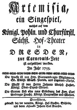 - 5. Februar: Die Opera seria Artemisia von Johann Adolph Hasse nach einem Libretto von Giovanni Ambrogio Migliavacca wird im Opernhaus am Zwinger in Dresden uraufgeführt.