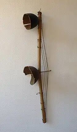 - La naissance du mvett. maximehenry2.skyrock.com (französisch, Abbildung einer mvet mit einer Kalebasse)