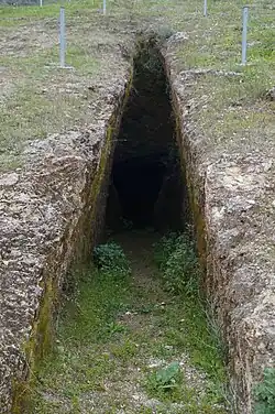 Stais fand auch noch zwei kleinere Kammergräber. Eines enthielt nur einen Skelett in hockender Position. Den Schädel fand er zwischen den Unterschenkelknochen. Anhand der Beigaben, einer bronzene Spange und zweier Spinnwirtel, vermutete er, dass hier eine Frau beigesetzt worden war.[5] Die Funde aus den Gräbern stammen aus der Zeit vom Ende des Späthelladikum III A2 bis SH III C (1340–1050 v. Chr.)[6]