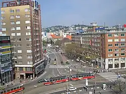 Der Platz ist als „schwache“ Fußgängerzone eingerichtet, mit durchgehender Straßenbahnverbindung und begrenztem motorisierten Individualverkehr.