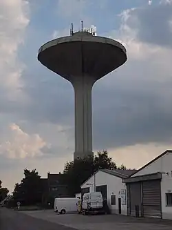 Bei der Erbauung des Turmes wurde der Wasserbehälter am Boden erstellt und danach durch ein sog. „ziehendes Heben“, d. h. mittels eines Krans an dem Turmschaft hinaufgezogen.[2]