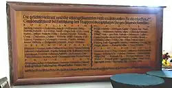 Tafel im Eingangsbereich der Düshorner Kirche mit den Namen der umgesiedelten Familien