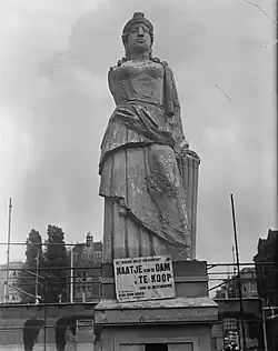 Zunächst war geplant, ein großes Kreuz aus den eingeschmolzenen Kanonen aufzustellen, die von den Belgiern erbeutet worden waren. Mit Rücksicht auf die Gefühle der Belgier wurde aber von dieser Idee Abstand genommen, und man entschied sich für eine allegorische Frauengestalt, die die Einheit des niederländischen Volkes symbolisieren sollte, bezugnehmend auf das Motiv der Nederlandse Maagd.[1]