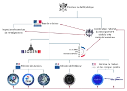 Für die Koordination der verschiedenen Dienste ist das Secrétariat Général de la Défense Nationale (SGDN) zuständig. Es ist Mitglied des Conseil de Securité Intérieure und arbeitet gemeinsam mit dem Secrétariat Général du Gouvernement (SGG) und dem Secrétariat Général pour les questions de coopération économique européenne (SGCI).