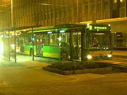 In Bern sowie in den Regionen Biel, Solothurn und Interlaken fährt der sogenannte Moonliner.[20] Im Gegensatz zu den regulären Buslinien sind die Moonliner-Linien jeweils mit einem vorangehenden M bezeichnet (beispielsweise M1 für den Moonliner nach Münchenbuchsee). Die Linien folgen zumindest teilweise den Tageslinien, die Nummerierung ist hiervon jedoch losgelöst. Abfahrtsort für den gesamten Nachtverkehr der Region Bern ist dabei der Bahnhofplatz Bern.[21] Insgesamt umfasst das Moonliner-Netz 43 Linien. Es wird von der Nachtliniengesellschaft (NLG) betrieben.