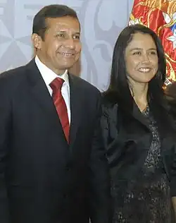 2005 gründeten Heredia und Humala die linksnationalistische, etnocaceristische Partei Partido Nacionalista Peruano (PNP), die 2006 im Wahlbündnis Unión por el Perú und 2011 im Wahlbündnis Gana Perú zu den allgemeinen Wahlen antrat. In der zweiten Runde der Präsidentschaftswahlen 2011 siegte Ollanta Humala, und so wurde Nadine Heredia Präsidentengattin, was sie bis zum Ende der Wahlperiode 2016 war. Nadine Heredia wurde ein erheblicher Anteil daran nachgesagt, dass ihr Mann die Wahlen gewann. Eine Rolle soll sowohl ihr Geschick als Politikerin als auch ihr Bild in der Öffentlichkeit als erfolgreiche Mutter einer Familie gespielt haben.[3]