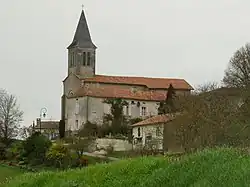 Die Kirche, die Mariä Geburt gewidmet ist, ist im 12. Jahrhundert erbaut worden. Im Jahre 1365 wurde sie erstmals in den Schriften erwähnt und war ursprünglich ein Priorat, das dem Ordenskapitel von Aubeterre-sur-Dronne im heutigen Département Charente unterstand. Während der zweiten Hälfte des 19. Jahrhunderts wurden umfangreiche Restaurierungsarbeiten verrichtet. Von der romanischen Epoche sind hierbei nur Wände des Chors erhalten geblieben. Auf diesen sind ein früherer rundbogenförmiger Eingang und die Reste von Arkaden und Fensteröffnungen zu erkennen. Die heutige Kirche ist aus Werksteinen und verputztem Bruchstein aus Kalkstein gebaut. Der Glockenturm wurde 1920 auf einem Narthex errichtet, einer schmalen, eingeschossigen Vorhalle, die in das Langhaus mündet. Zwei Seitenkapellen flankieren das Hauptschiff im Norden und im Süden und bilden die Querarme eines Transepts. Das Hauptschiff besitzt ein Tonnengewölbe und liegt nicht auf der Längsachse des Chors, der einen viereckigen Grundriss besitzt und mit einem falschen Kreuzrippengewölbe versehen ist.[12]