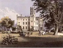- Das Schloss Norok wurde 1858 von Friederich (von) Wichelhaus[15][16][17][18], seiner Gattin Elise geb. von Eynern, einem Bankier aus Elberfeld, erworben. Diese ließen das Schloss im byzantinischen Stil umbauen und den zwei Hektar großen Park umgestalten und mit exotischen Bäumen und Sträuchern bepflanzen. Nach 1945 wurden im Schloss Wohnungen eingerichtet. Durch fehlende Sanierungen verfiel das Gebäude. Mitte der 1990er Jahre verließen die letzten Bewohner das Schloss. 2007 wurde das Schloss von einem polnischen Investor erworben und daraufhin für 600.000 Złoty bis 2016 saniert.[2]