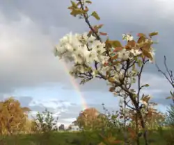 Die Blütezeit beginnt Anfang April und dauert bis Anfang Mai an. Für eine optimale Bestäubung werden andere Birnen- oder Nashisorten in der Umgebung benötigt.[5]