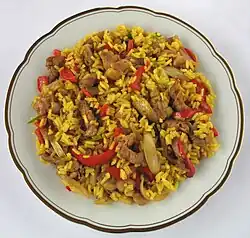 Nasi Goreng ist ein in Indonesien weit verbreitetes Reisgericht. Der Name stammt von nasi [] (indonesisch: gekochter Reis) und goreng [] (indonesisch: gebraten). Traditionell wird es als Rest vom Vortag meist schon morgens warm verspeist.