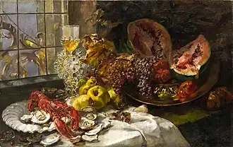 - Melonen, Trauben und Fische, ein Hummer, Austern, 1894 Ausstellung Sächsischer Kunstverein[14]