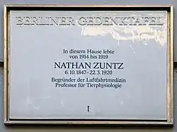 Nathan Zuntz (* 7. Oktober 1847 in Bonn; † 22. März 1920 in Charlottenburg)[1] war ein deutscher Physiologe. Seine umfassenden tierphysiologischen Arbeiten sind bis heute aktuell. Er war ein Wegbereiter der modernen Höhenphysiologie und Mitbegründer der Luftfahrtmedizin.