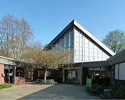 Die Kirche und einige der Gemeinderäume und der Gemeindesaal haben einen sechsseitigen Grundriss. Das mit Rotziegel verklinkerte Gemeindezentrum mit integrierter Kindertagesstätte wird von der geknickten gläsernen Giebelfassade der Kirche überragt. Die Kirche bildet den größten Raum des Komplexes und bietet 300 Gläubigen Sitzplätze. Für den modernen Bau mit großen Sichtbetonflächen wurden Holz und Glas, Metallverstrebungen sowie ein großflächiges Schieferdach als gestalterische Elemente genutzt. Alle Gebäude sind durch einen trichterförmigen Vorplatz verbunden, der auf den Kircheneingang mit einem vorgelagerten Vestibül zuläuft.