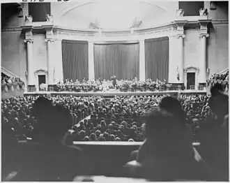 - ↑ Harold C. Schonberg: Kennedy Hall Gets Acoustics Workout. In: The New York Times. 2. September 1971, abgerufen am 11. Februar 2021.