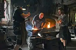 alle Bundesländer | Das Schmieden von Metallen ist bereits im alten Ägypten praktiziert worden, in Europa sind erste Schmiedeerzeugnisse aus der Hallstattzeit (um 1000 v. Chr.) bekannt. Geschmiedete Metallobjekte findet man seither in vielen Teilen der Gesellschaft, u. a. in der Baukunst, als Schmuck und sakrale Objekte, als Alltagsgegenstände und Werkzeuge. In Österreich existieren noch etwa hundert Handwerksbetriebe, die die Kunst des Freihandschmiedens praktizieren. Dazu wird nach einer Skizze oder mit Hilfe einer Schablone das passende Material vorgerichtet. Im Schmiedefeuer erhitzt, wird das Metall mit Hilfe von Werkzeugen, wie Stöckel und Hämmern und verschiedenen Schmiedeverfahren zum Endprodukt geformt. Freihandschmieden ist ein Lehrberuf, die dazu erforderlichen Techniken werden durch lange Berufserfahrung erlernt und an die junge Generation weitergegeben. Jeder Schmiedemeister erhält auch heute noch sein eigenes Punzzeichen. Auf zahlreichen Märkten und Volksfesten demonstrieren die Handwerker im Rahmen von Schauvorführungen die traditionelle Handwerkstechnik.[25] | ||
