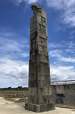 Die quadratische Stele wurde aus Kersantit geschaffen. Sie ist von einer Frauenbüste mit Trauerkopfschmuck bekrönt, die den Schmerz der Hinterbliebenen symbolisiert. Es trägt nach Westen zur Seeseite hin die französischsprachige Inschrift: