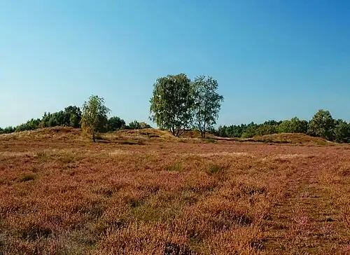 Bestimmende Pflanzen sind Drahtschmiele und Heidekräuter. Ein Wald aus Birken und Stiel-Eichen umgibt die Flächen. Hervorhebenswerte Brutvögel sind Grünspecht und Wendehals im Gebiet.