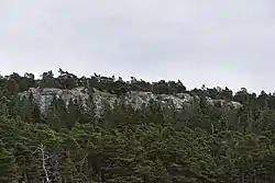 Oberhalb der Klippe existiert ein vorwiegend aus Kiefern bestehender Bewuchs. In diesem Wald finden sich Reste einer Fornburg (vorzeitliche Burg). In den Klippen befinden sich im nördlichen Teil des Geländes viele Grotten, von denen Brucegrottan die bekannteste ist. Unterhalb der Klippe ist der Boden feuchter und die Vegetation üppiger. An mehreren Stellen quillt Wasser aus dem Boden und bildet kleine Rinnsale und etwa 2 ha große Wasserflächen.