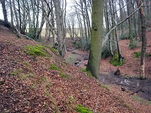 - Erhaltung und Entwicklung von altem Mischwald mit Buchen, Hainbuchen und Eichen sowie standortgerechten Erlenwäldern in den Quellbereichen,