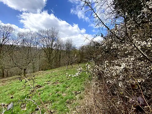 ![]() blühende Schlehen / alte Apfelbäume im NSG Ober der Lehmkuhle | ||