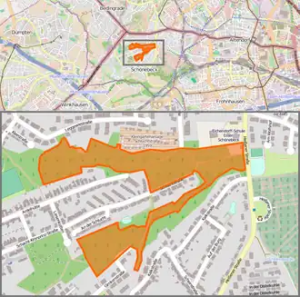 - ↑ Andreas Koerner, Klaus Scholz, Wolfgang Sykorra: Man war nie fremd. Die Essener Bergbaukolonie Schönebeck und ihr Stadtteil, Essen 2009, S. 113ff.
