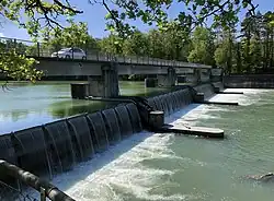 Die beiden Stauanlagen im alten Flussbett wurden gebaut, um den Wasserabfluss zu steuern, die Erosion des Bodens zu mindern und den Grundwasserstand zu halten. Betonierte Fischtreppen ermöglichen es den Fischen, die Hindernisse zu passieren.