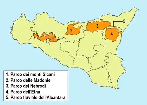 In Sizilien liegen (Stand 2023) einer der italienischen Nationalparks (Parchi nazionali), vier Regionalparks (Parchi regionali), 77 regionale Naturschutzgebiete (Riserve naturali, in Sizilien gibt es nur regionale Naturschutzgebiete, keine staatlichen) und sieben Meeresschutzgebiete (Aree marine protette).