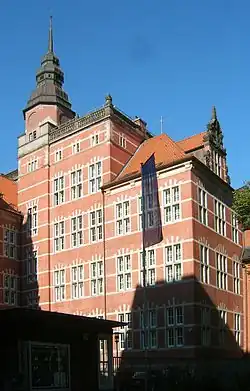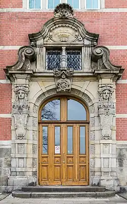Das Backsteingebäude der vormaligen Navigationsschule im Stadtteil Hamburg-St. Pauli oberhalb des nördlichen Elbufers wurde zwischen 1903 und 1905 nach Plänen von Albert Erbe erbaut. Die Fassaden des im Stil der niederländischen Renaissance gehaltenen Bauwerks sind mit Kartuschen mit Namenseinträgen verziert, mit denen an verdiente Geographen, Entdecker und Kartographen erinnert werden soll.[15] Das Gebäude wird heute vom Deutschen Wetterdienst genutzt.