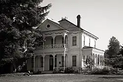 Das Haus ist ein zweistöckiges Gebäude mit einem quadratischen Grundriss. Die Fassade besteht aus Schindeln. Der Vordereingang liegt zentral zwischen zwei Fenstern; auf der gegenüberliegenden Seite befinden sich drei Fenster. Sie sind alle mit einem Gebälk und dekorierten Rand umgeben. Unter jedem Sturz ist gesägtes Schweifwerk angebracht.[1] Eine dekorative Konsole trennt den ersten vom zweiten Stock. Im Erdgeschoss sind an den Seiten offene Veranden vorhanden, die über die gesamte Länge des Hauses laufen. Die Veranda an der Vorderseite hat im zweiten Stock einen Balkon; darüber sitzt ein Dreiecksgiebel. Das Innere der Giebelkonsole ist gefüllt mit diamantförmigen Schindeln und hat ein zentrales rundes Fenster.[1]