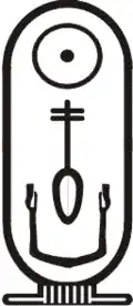 - ↑ mit NamensIdeogramm für einen König, das den Horusfalken darstellt