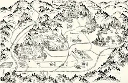 - ↑ Im Jahre 1976 durchgeführte Grabungen ergaben, dass sich die Anlage einst auf über vier Mio. Quadratmeter erstreckte. Die dabei gefundenen Lackgefäße, Waffen, Kultgeräte, Porzellane, Keramiken usw. sind im nahegelegenen Städtischen Volkskundemuseum ausgestellt.