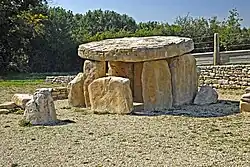 So findet man etwa Nachbauten oder Rekonstruktionen von Dolmen und eines Stufen-Tumulus. Gezeigt wird auch das Zwickelmauerwerk zwischen den Orthostaten der Tumuli.