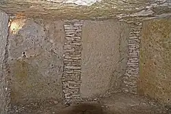 Das auf 4700 v. Chr. datierte Grab enthielt die nicht im Verband befindlichen Gebeine von etwa zehn Individuen, von deren die Hälfte Kinder waren. Eine rote Tonschicht bedeckte den gewachsenen Boden. Die ärmlichen Beigaben beschränken sich im Wesentlichen auf zwei Keramiken, sechs Knochenmeißel und einige Feuersteinwerkzeuge. Sie lagen nicht neben den Skeletten, sondern auf ca. 30 cm hohen Steinen, die einen Wandvorsprung bildeten. Die Nachnutzungen ruhten auf dem Steinvorsprung.
