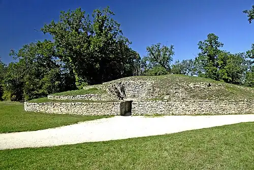 Die neolithischen Tumuli und die Mauer in der Nekropole von Bougon liegen bei Bougon, in der Nähe von La Mothe-Saint-Héray, an der Straße von Exoudun nach Pamproux, im Département Deux-Sèvres in Frankreich, etwa 35 km südwestlich von Poitiers und gut 30 km nordöstlich von Niort. Ihre Entdeckung im Jahre 1840 rief großes wissenschaftliches Interesse hervor. Um den Standort zu schützen, erwarb das Département den Platz am Oberlauf des Flusses bereits 1873. Die ältesten Teile der Nekropole werden auf 4700 v. Chr. datiert.