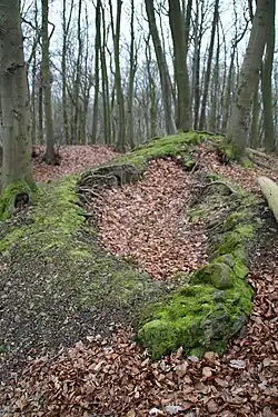 Heute noch sehr gut erkennbar sind die Betonfundamente und Überreste der Pfosten eines viereckigen hölzernen Turmes auf dem höchsten Punkt. Eine Inschrift lässt eine genauere Datierung zu: