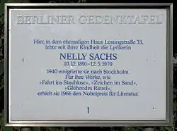 - ↑ Nelly Sachs. In: Berliner Ehrenbürger. Abgeordnetenhaus von Berlin, abgerufen am 7. November 2024.