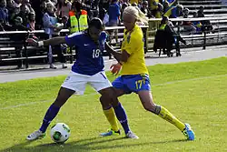![]() Nenê im Zweikampf mit Schwedens Caroline Seger in Stockholm