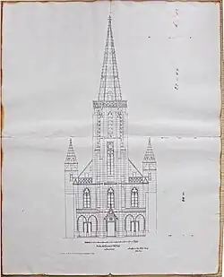 So entschied man sich angesichts der schweren Verwüstungen, auch aus Gründen der Stilreinheit, für den Totalabbruch der barocken Fassade und errichtete in den Jahren 1883 bis 1885 eine dem Stil des neogotischen Langhauses entsprechende neogotische Turmfassade durch den Kölner Architekten Vincenz Statz, einem einflussreichen Vertreter der Neogotik im Rheinland. Im Jahr 1841 war Statz in die Dombauhütte des Kölner Domes eingetreten, wo er ab 1845 als Werkmeister tätig wurde. Gleichzeitig mit Friedrich von Schmidt, dem späteren Erbauer des neogotischen Wiener Rathauses, wurde er vom Dombaumeister Ernst Friedrich Zwirner auch zur Bearbeitung der Pläne des Domweiterbaues herangezogen. Statz hatte sich bereits seit dem Jahr 1856 mit dem neogotischen Kirchenerweiterungsbau der alten Pfarrkirche St. Johannes und Paulus im Saarlouis nahe gelegenen Beckingen beschäftigt, wozu ihn der dortige Pfarrer Franz Xaver Leidinger (1810–1890) unter Vermittlung des Trierer Bischofs Wilhelm Arnoldi und des Kölner Generalvikars Johann Anton Friedrich Baudri beauftragt hatte. Nachdem man sich in Beckingen dann aber für den kompletten Neubau einer Pfarrkirche entschieden hatte und der Eisenbahnbauführer R. Vogdt die diesbezüglichen Baupläne (später von Carl Friedrich Müller weitergeführt) unentgeltlich erstellt hatte, wurde die Beauftragung von Statz fallengelassen.[10]