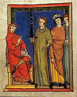 Eine ältere Schicht der Eintragungen ist systematisch nach Rechtsthemen gegliedert. Dazu gehören auch die dreizehn Miniaturen. Diese zeigen etwa die Huldigung des Erzbischofs von Köln oder die des Marschalls von Westfalen. Es gibt weiter Bilder von der Anklageerhebung vor dem städtischen Richter oder Illustrationen zu Viehraub, Hinrichtung durch Enthauptung, falschen Zeugen, die Zerstörung eines Hauses zu Strafzwecken, das Rädern, die Anklage von Dienern im Haus, die Gefangensetzung von Personen, falsches Spiel, Ausweisung aus der Stadt oder die Strafe des Wippens. Zu den meisten Miniaturen existieren passende Texte.