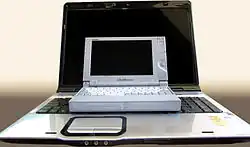 Auf einer sehr ähnlichen Basis, jedoch für erwachsene Privatkunden gedacht, entstanden schließlich die Ende der 2000er-Jahre als Netbook bezeichneten Geräte. Das erste Netbook dieser Art war der Asus Eee PC 700, der im Oktober 2007 in Taiwan eingeführt wurde und seit Januar 2008 in Europa erhältlich war. Der Hersteller hatte anfangs aufgrund hoher Nachfrage mit Verfügbarkeitsproblemen zu kämpfen.[9] Anschließend stellten diverse Anbietern ähnliche Geräte vor. Im ersten Halbjahr 2009 wurden weltweit etwa 13,5 Millionen Geräte verkauft.[10]