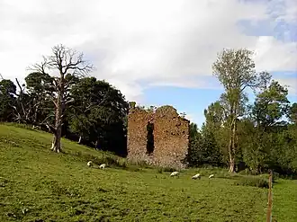 Eine Reihe von Gebäuden bildete einen kleinen Innenhof; sie erstreckten sich vom Turm zunächst etwa 14 Meter nach Osten und dann etwa 22 Meter nach Norden. Von all diesen Gebäuden ist nur ein kleines Fragment an der Nordseite erhalten, das heute einen Teil einer Feldmauer bildet.