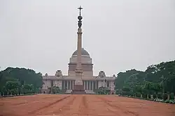 Rashtrapati Bhavan die offizielle Residenz des indischen Präsidenten, ist eines der größten und prächtigsten herrschaftlichen Bauwerke. Das H-förmige und lachsfarbene Gebäude, am westlichen Ende der Promenade Rajpath am sanft abfallenden Hang des Raisina Hill gelegen, wurde zwischen 1921 und 1929 von Edwin Lutyens und Herbert Baker für den Vizekönig entworfen. Er war ein Symbol imperialer Macht. Das Gebäude trägt trotz seiner klassischen Säulen, der indischen Filigranfarben sowie seiner Chhatris und Kuppeln im Mogul-Stil eine unverkennbare britische Handschrift.