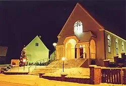 Das jetzige markante Kirchengebäude der Neuapostolischen Gemeinde wurde am 29. November 1925 eingeweiht, weil die 1885 gebaute Kapelle zu klein wurde. Architekt war der Coswiger Baumeister Dorn. Das Kirchenschiff ist neun Meter breit, 24 Meter lang und acht Meter hoch. Es verfügt über eine Holzempore auf der 1954 eine Pfeifenorgel installiert wurde, die leicht verändert noch heute spielt. Architektonisch interessant ist die für neuapostolische Kirchenbauten untypische Apsis sowie der Korbdachbogen und die bunten Bleiglasfenster. Das Orgelfenster an der Giebelseite zur Hauptstraße zeigt ein englisches Kleeblattkreuz. Der Aufgang zur Kirche erfolgt über eine breite offene Treppe durch ein mit Säulen gestütztes Vordach.