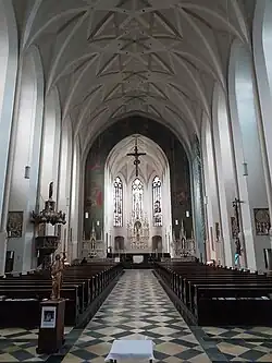 1978 wurden bei der letzten Renovierung die Gewölberippen durch Peter Burkart wieder malerisch angedeutet. Die neugotische Einrichtung ist nur noch im marmornen Hochaltar von Joseph Knabl, den Seitenaltären und der Kommunionbank erhalten.