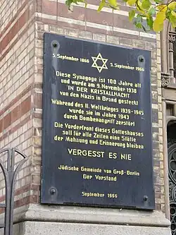 - ↑ a b Judith Leister: Wunde und Mahnmal. Die Berliner Neue Synagoge erzählt in ihrer Dauerausstellung die eigene Geschichte und das wechselvolle Schicksal ihrer Gemeinde. In: Neue Zürcher Zeitung. 27. September 2018, S. 22, abgerufen am 15. November 2018.