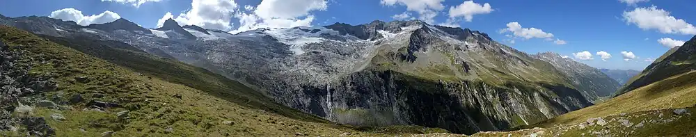 Talschluss des Habachtales mit Neuer Thüringer Hütte (rechts am Bildrand)