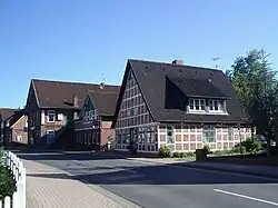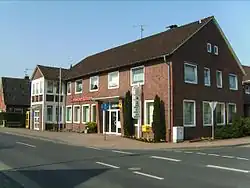 Häuser in Neuenkirchen. Links eine Gaststätte, rechts das Wohnhaus Dorfstraße 38